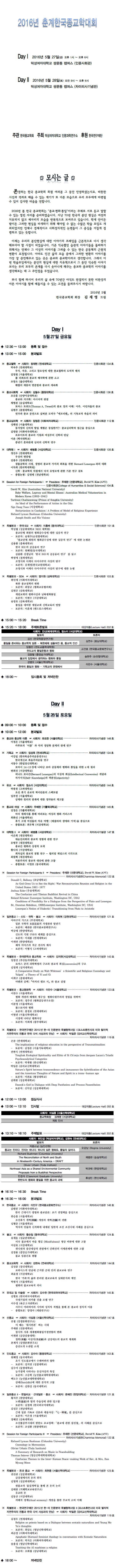 ♣ 2016년 춘계한국종교학대회 세부일정 및 발표장소 안내 ♣