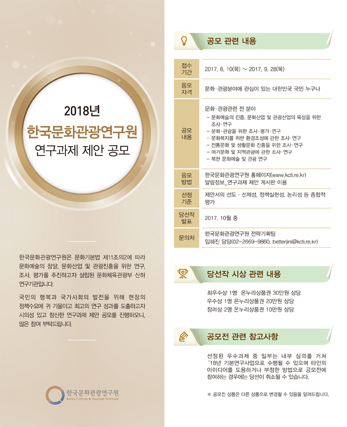 2018년 한국문화관광연구원 연구과제 제안 공모