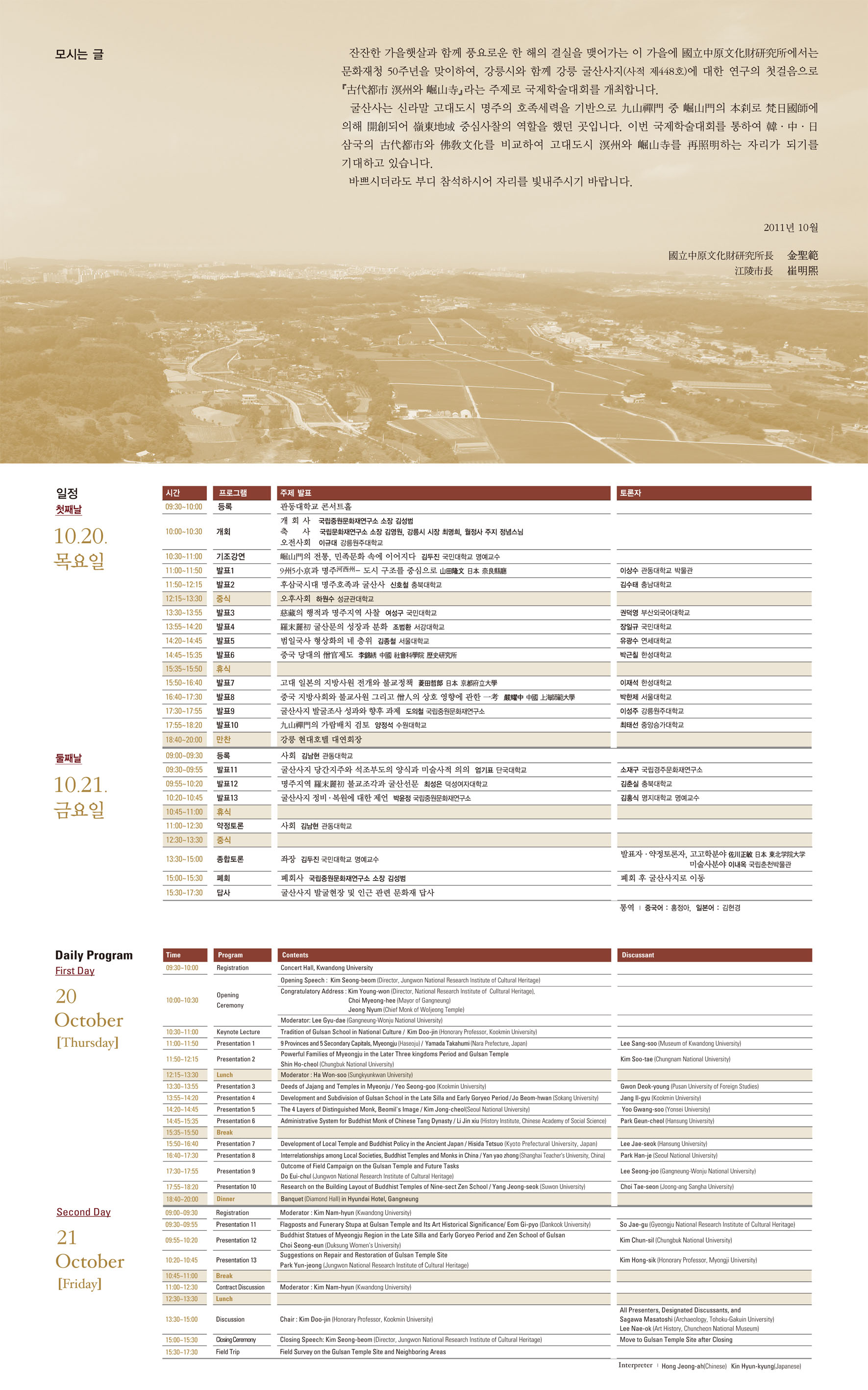 ㅇ 세부 프로그램(국립중원문화재연구소의 굴산사지 발굴현장 답사 포함)은 붙임 참조