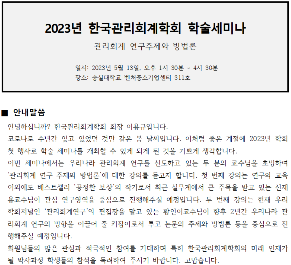 2023 특별학술대회 개최 안내(5/13 토, 숭실대학교)