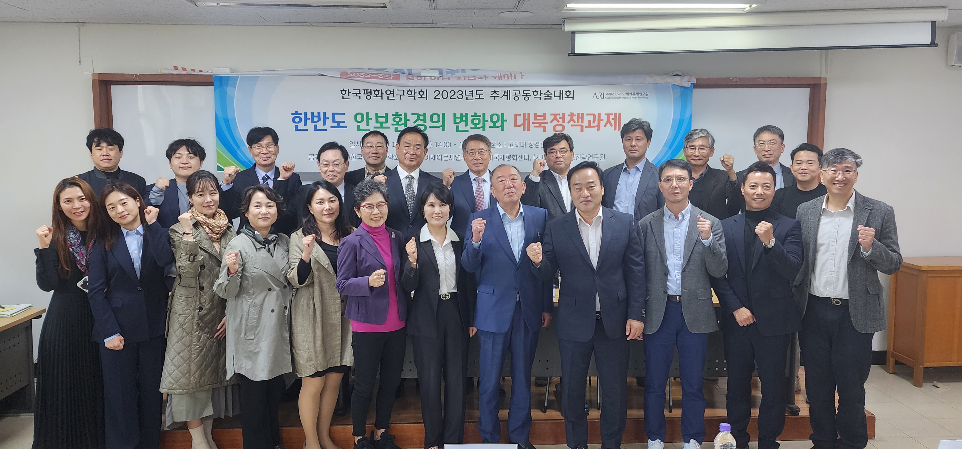 △ 단체사진 전경2023 사)한국평화연구학회 추계 공동학술회의ㅇ 일시: 2023년 10월 21일(토) 14:00~18:00ㅇ 장소: 고려대학교 정경관 503호ㅇ 주제: 한반도 안보 환경의 변화와 대북 정책과제ㅇ 주최: 사)한국평화연구학회, 고려대학교 아세아문제연구원 통일과국제평화센터, 사)21세기안보전략연구원