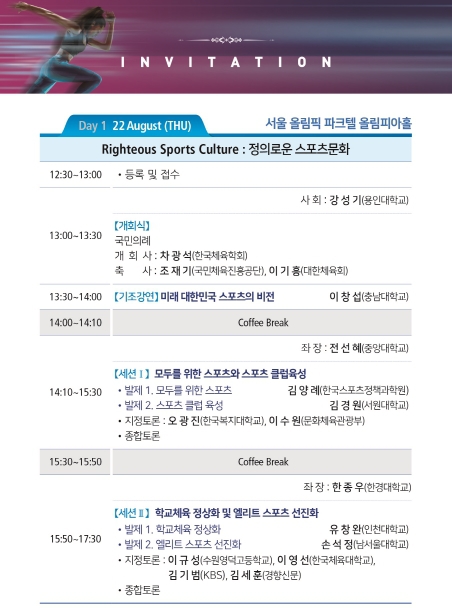 2019 스포츠 이슈포럼 및 제31회 서울올림픽기념 서울국제스포츠컨퍼런스 일정 및 프로그램 안내