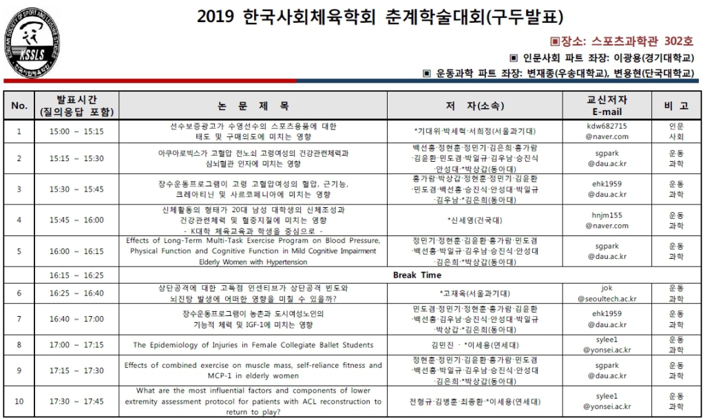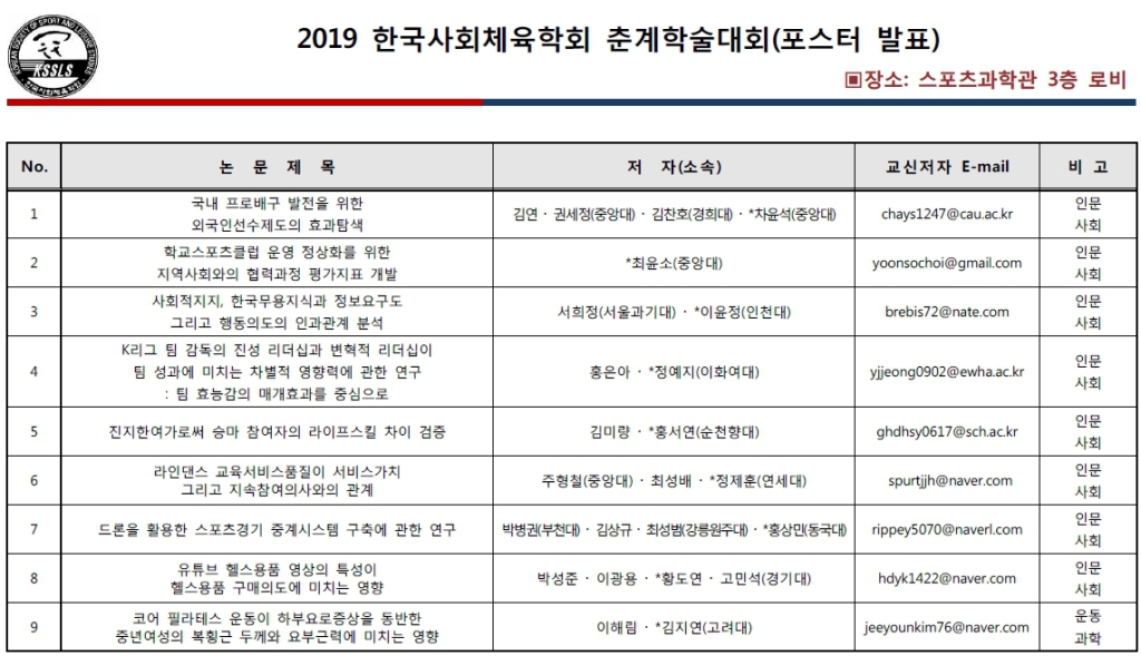 2019 한국사회체육학회 춘계학술대회 프로그램을 안내해드립니다.