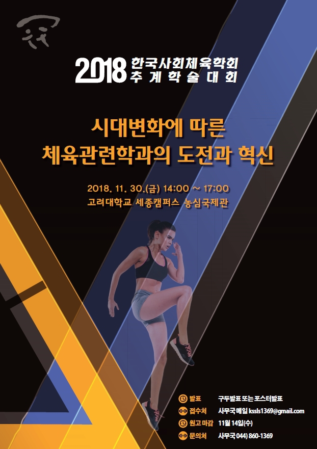 2018 한국사회체육학회 추계학술대회 구두 및 포스터 발표 원고접수 안내