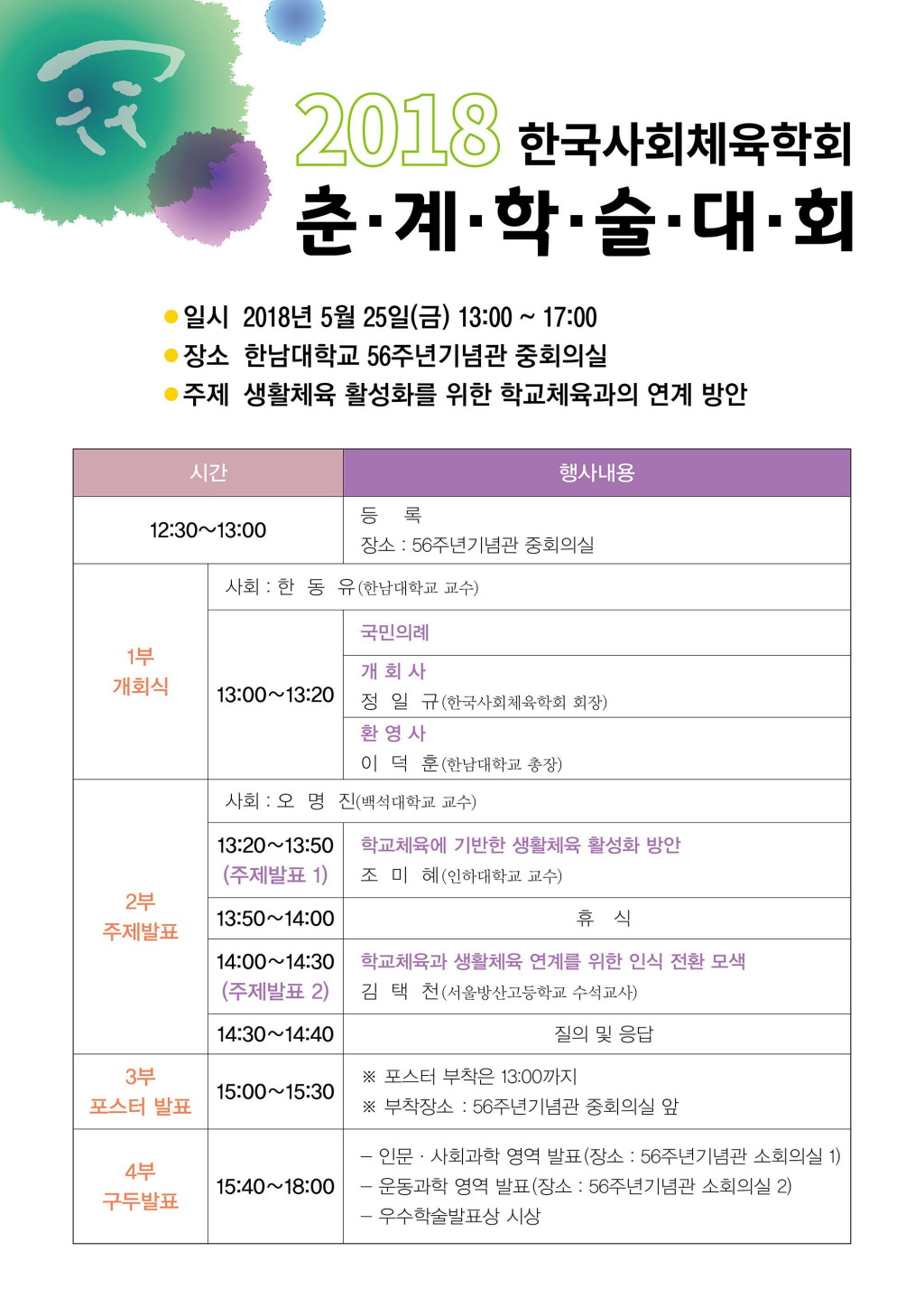 2018년 한국사회체육학회 춘계학술대회 일정표 안내