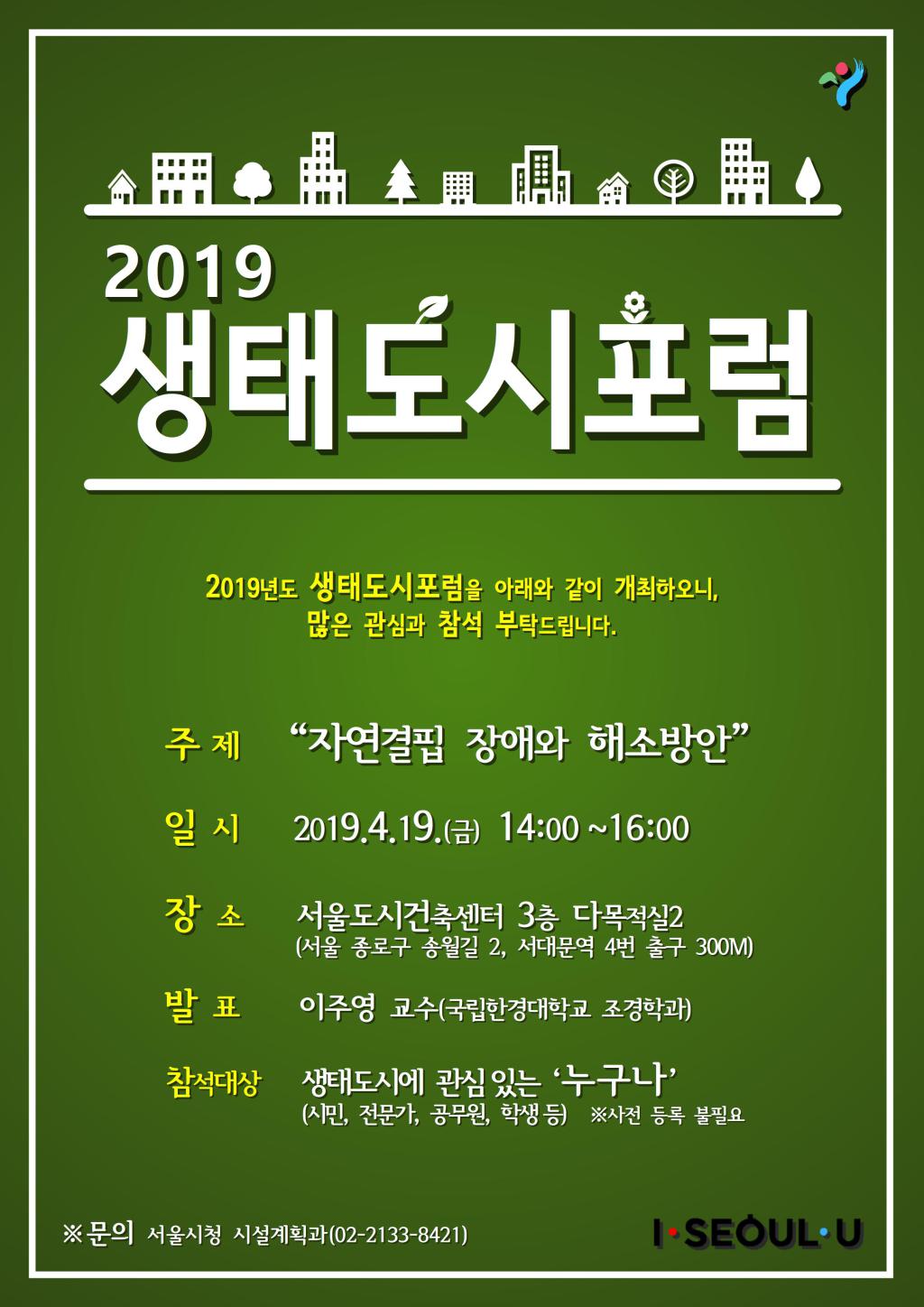 ※홍보※ 2019 생태도시포럼 개최 안내