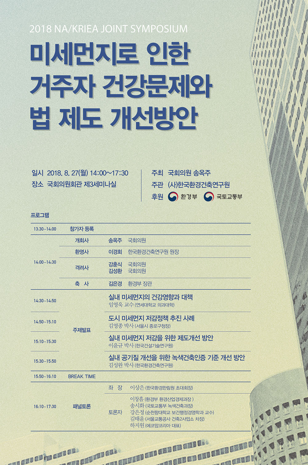 ※홍보※ [미세먼지로 인한 거주자 건강문제와 법 제도 개선방안] 정책 토론회에 초대합니다.