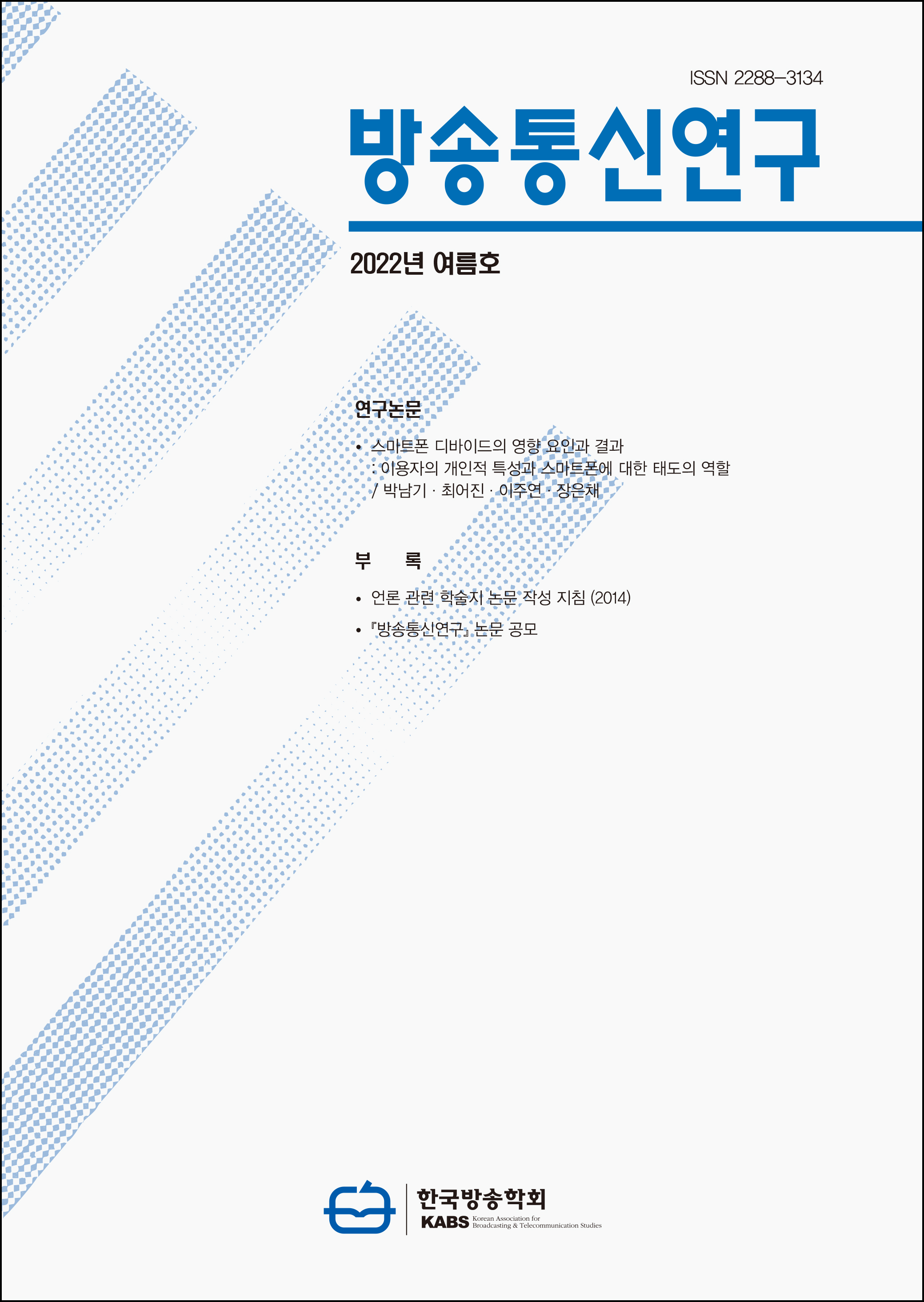 3. 119호 논문은 방송학회 홈페이지의 ‘논문통합검색’에서 논문을 내려 받아 읽으실 수 있습니다.