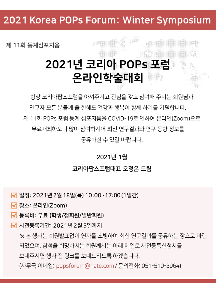 제 11회 코리아팝스포럼 온라인학술대회 개최(2021.2.18)