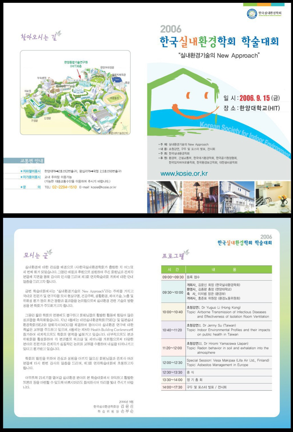 2006년도 한국실내환경학회 학술대회 안내 발표논문 및 선등록 마감: 2006년 8월 25일(금) ◆ 주제 : '실내환경기술의 New Approach' ◆ 일시 : 2006년 9월 15일 (금) 오전 9시~오후 5시 30분 ◆ 장소 : 한양대학교 HIT(6층) ◆ 내용 : 구두 및 포스터 발표, 초청강연, 전시회 ◆ 후원 : 환경부, 건설교통부, 한국대기환경학회, 한국공기청정협회, 한국입자에어로졸학회, 한국환경보건학회, 대한설비공학회 ■ 프로그램 (최종) ※오후 프로그램 일정이 일부 변경 되었으니 확인하시기 바랍니다. 시 간 내 용 09:00-09:30 등록 접수 09:30-10:00 개회사 / 김윤신 회장 (한국실내환경학회) 환영사 / 김종량 총장 (한양대학교) 축사 / 이치범 장관 (환경부) 격려사 / 홍준표 위원장 (환경노동위원회) 10:00-10:40 초청강연 I. Dr Yuguo Li (Hong Kong) Topic: Airborne Transmission of Infectious Diseases and Effectiveness of Isolation Room Ventilation 10:40-11:20 초청강연 II. Dr Jenny Su (Taiwan) Topic: Indoor Environmental Profiles and their impacts on public health in Taiwan 11:20-12:00 초청강연 III. Dr Hiromi Yamazawa (Japan) Topic: Radon behavior in soil and exhalation into the atmosphere 12:00-12:30 Special Session. Vesa Makipaa (Lifa Air Ltd., Finland) Topic: Asbestos Management in Europe 12:30-13:30 중 식 13:30-14:00 정 기 총 회 14:00-17:30 구두 및 포스터 발표 / 전시회 ■ 학회지 3권 1,2호 배부 학회지 3권 1호와 2호를 학술대회 당일 행사장에서 배부해 드릴 예정이오니 회원 여러분께 서는 학술대회에 참가하셔서 수령하시기 바랍니다. ■ 협찬사 및 전시회사 모집 안내 이번 학술대회에 협찬이나 전시회에 참가하시고자 하는 기업은 학회 사무국으로 참가신청서를 8월25일 금요일까지 제출하여 주시기 바랍니다. (입금 기한: 2006년 8월 25일(금)까지) ■ 발표논문 접수 학술대회 논문원고(full paper) 접수 마감: 2006년 8월 25일(금) 홈페이지를 통하여 접수 시 같은 논문에 대하여 단 1회만 접수 받습니다. 충분히 검토하신 후 제출해 주시기 바라며, 논문 분량은 A4용지 4쪽이 원칙입니다. 자세한 내용은 학회 홈페이지 발표논문안내 를 참조하십시오. 발표논문접수 바로가기 ■ 선등록 접수 우리 학회에서는 학술대회 참가신청을 선등록 제도로 시행합니다. 선등록 하신 분께는 행사 당일 등록비보다 일반 10,000원(학생 5,000원) 이 할인되오니, 가능한 선등록을 하셔서 원 활한 행사 진행이 되도록 협조하여 주시기 바랍니다. 가. 마감일: 2006년 8월 25일(금) 나. 신청방법: 학회 홈페이지에서 선등록접수 바로가기 다. 선등록비 납부방법: 학회계좌로 송금 또는 홈페이지상에서 온라인 카드결재 은행명 계좌번호 예금주 신한은행(구조흥은행) 597-01-016690 사단법인한국실내환경학회 라. 등록비 (중식 및 논문집 포함) 구분 선등록비 현장등록비 일반등록 회원 (2006년도 연회비 납부자에 한함) 30,000원 40,000원 비회원 40,000원 50,000원 학생등록 15,000원 20,000원 ■ 기타 자세한 사항은 학회 홈페이지(www.kosie.or.kr)를 참조하시기 바랍니다. |