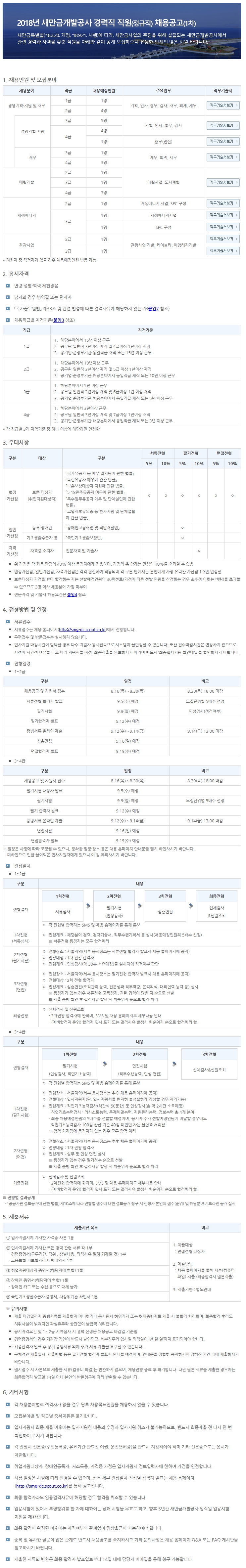 [새만금개발공사] 2018년 새만금개발공사 경력직 직원(정규직) 채용공고(1차)(8.16~8.30, 18시까지)