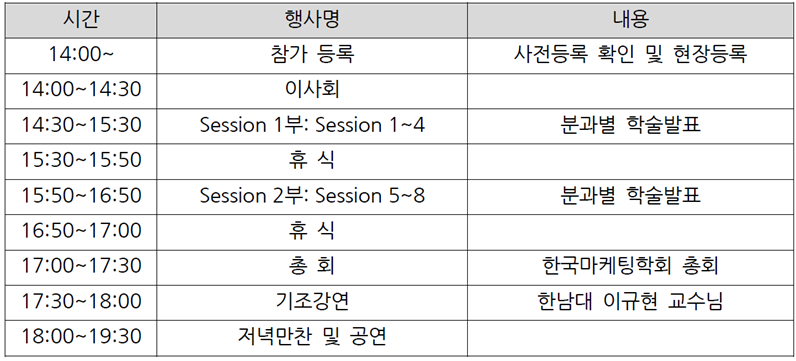 *한국마케팅학회 추계학술대회 일정