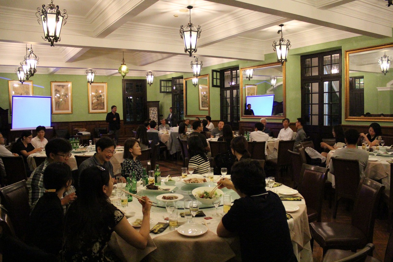 이후 KMA Dinner의 저녁만찬이 상하이 라오짠(Shanghai Old Station)에서 Cheil PengTai의 후원으로 진행되었습니다. 만찬 중에 Cheil PengTai의 구자경 소장님의 간략한 사업소개가 진행되었고, 학회원님들의 적극적인 질의 및 답변이 이어졌습니다. 중국 광고 시장의 현황에 대해서 살펴볼 수 있었던 귀한 시간이었습니다. 질의 및 답변 후에 참여해주신 기업 연사님들께 감사의 인사를 드렸습니다.