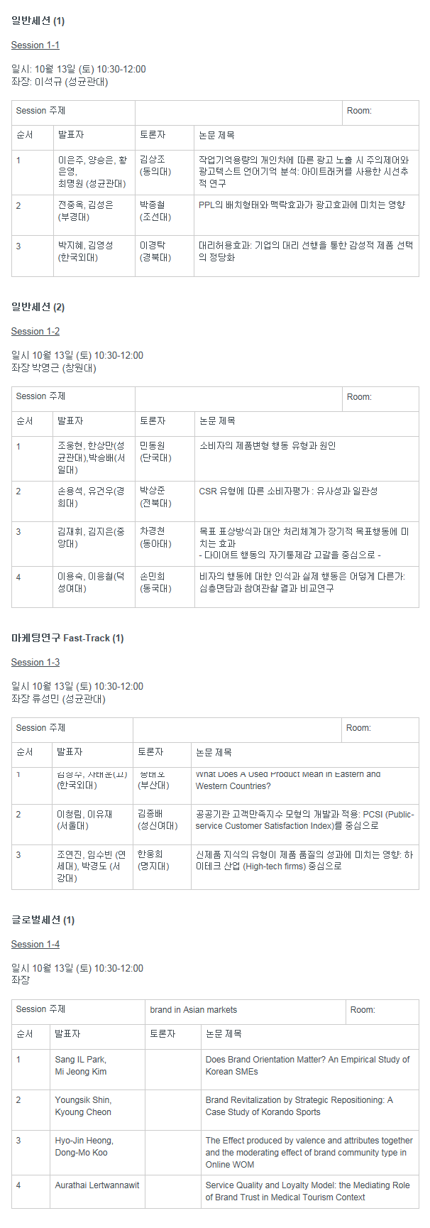 이번에 개최될 추계통합학술대회는 한국마케팅학회, 한국마케팅관리학회 및 한국전략마케팅학회가 공동으로 2012년 10월 12일(금) 및 13일(토) 사이에 성균관대학교에서 개최될 예정입니다.