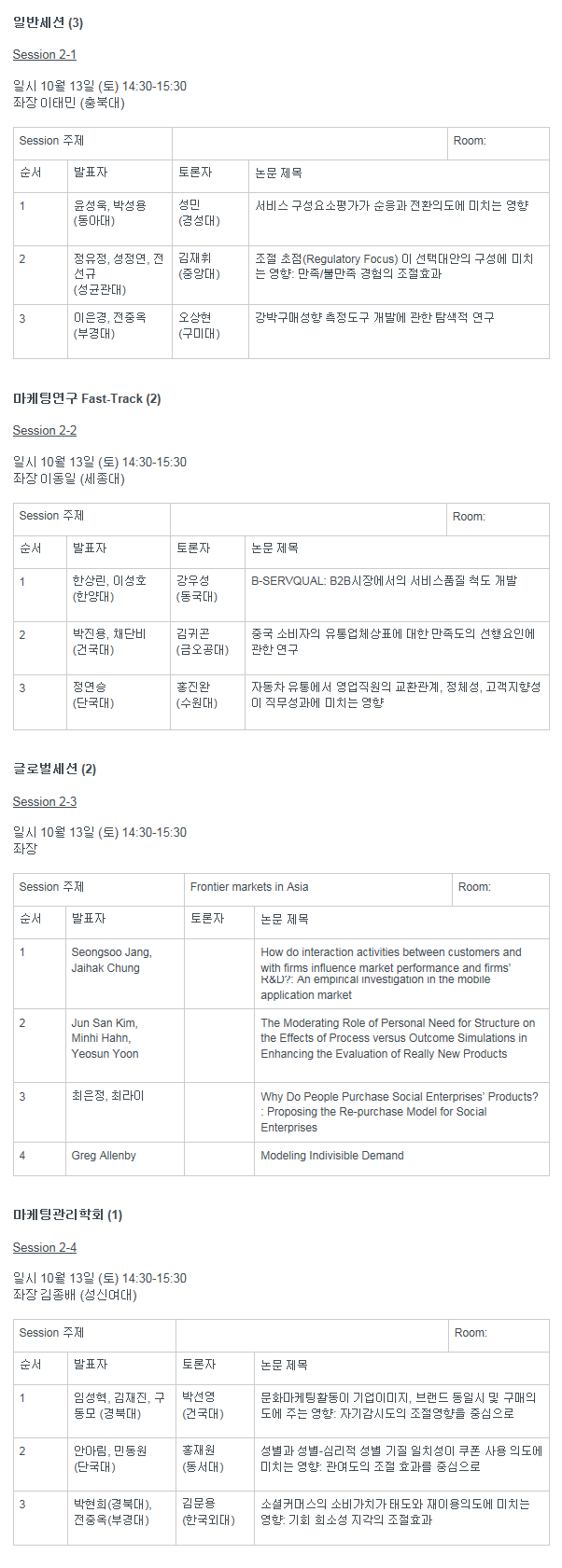 그리고 아시아마케팅저널과 마케팅관리연구의 경우 1차 심사를 면제하는 세션도 별도 준비되어 있습니다.