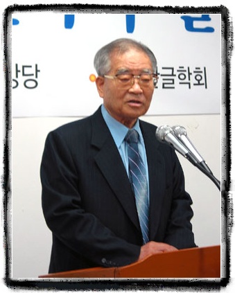 2005년 10월 30일 10시부터 한글회관 5층 강당에서 있었던 제7회 외국인 한국어 발표 대회의 모습입니다. 사진은 한글학회 김계곤 회장님의 인사말씀 모습입니다. <찍은 이: 김영조(2005. 10. 30.)>