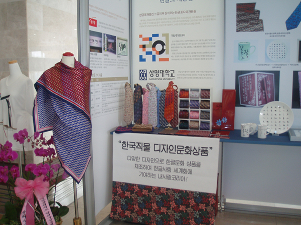 2005년 10월 9일 (일) 오전 10시부터 국립극장에서 있었던 559돌 한글날 기념식의 한 행사로 펼친 한국직물 디자인문화상품 전시의 한 모습입니다. <찍은 이: 꿈돌이(2005.10.9.)>