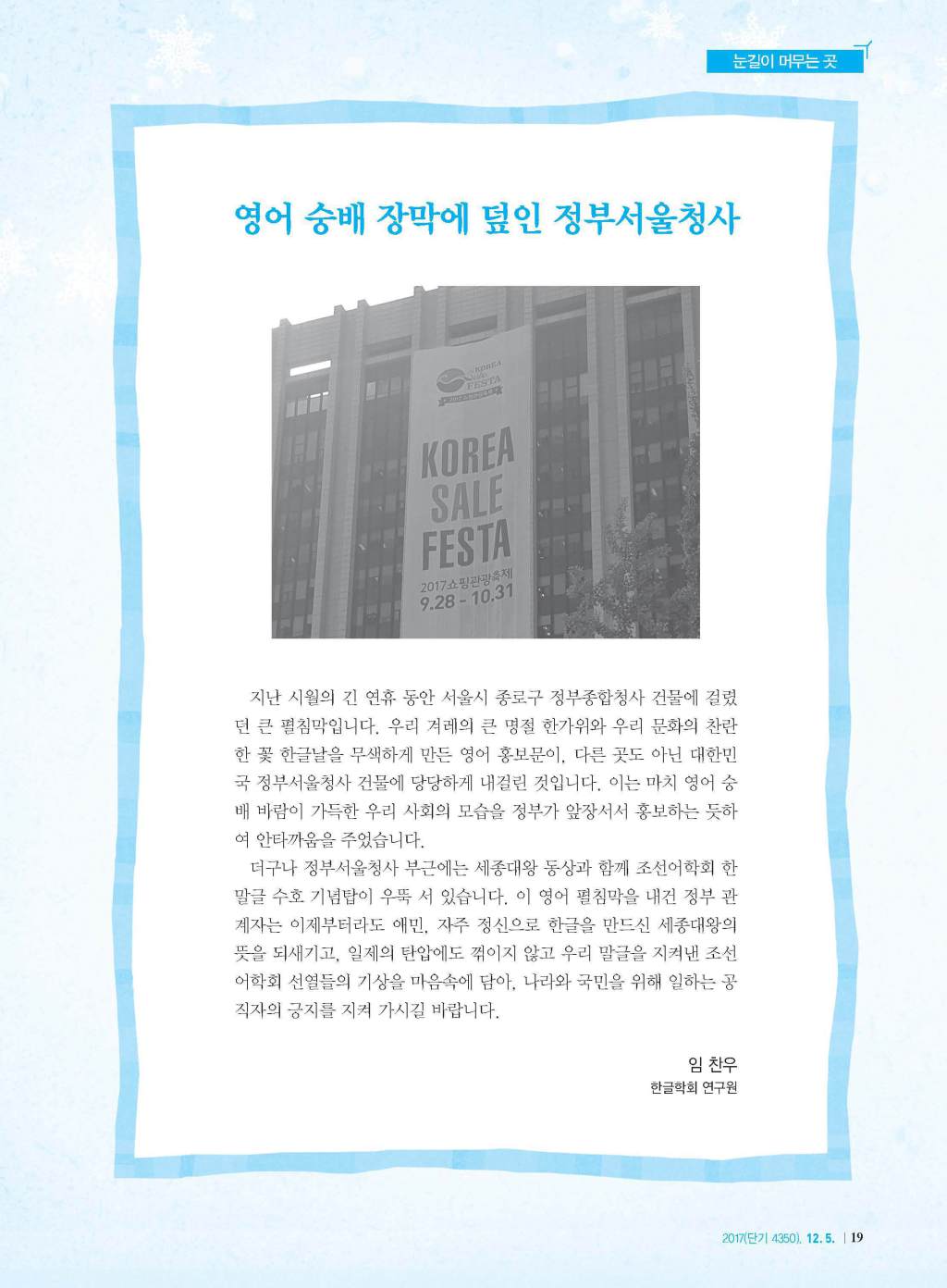 영어 숭배 장막에 덮인 정부서울청사(한글 새소식 제544호)