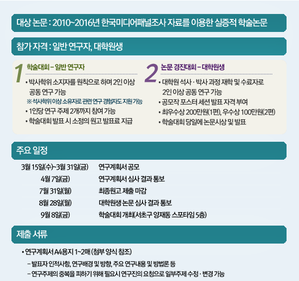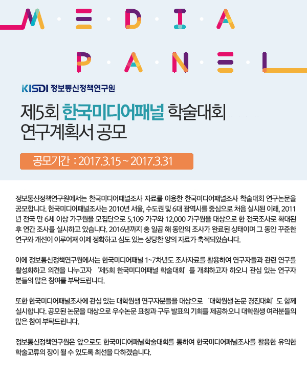 [안내] (KISDI) 제5회 한국미디어패널 학술대회 연구계획서 공모