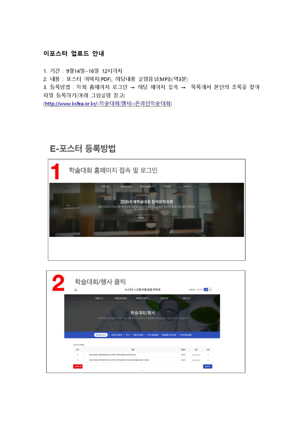 2020년도 환경독성보건학회/환경분석학회 추계학술대회 이포스터 업로드 안내