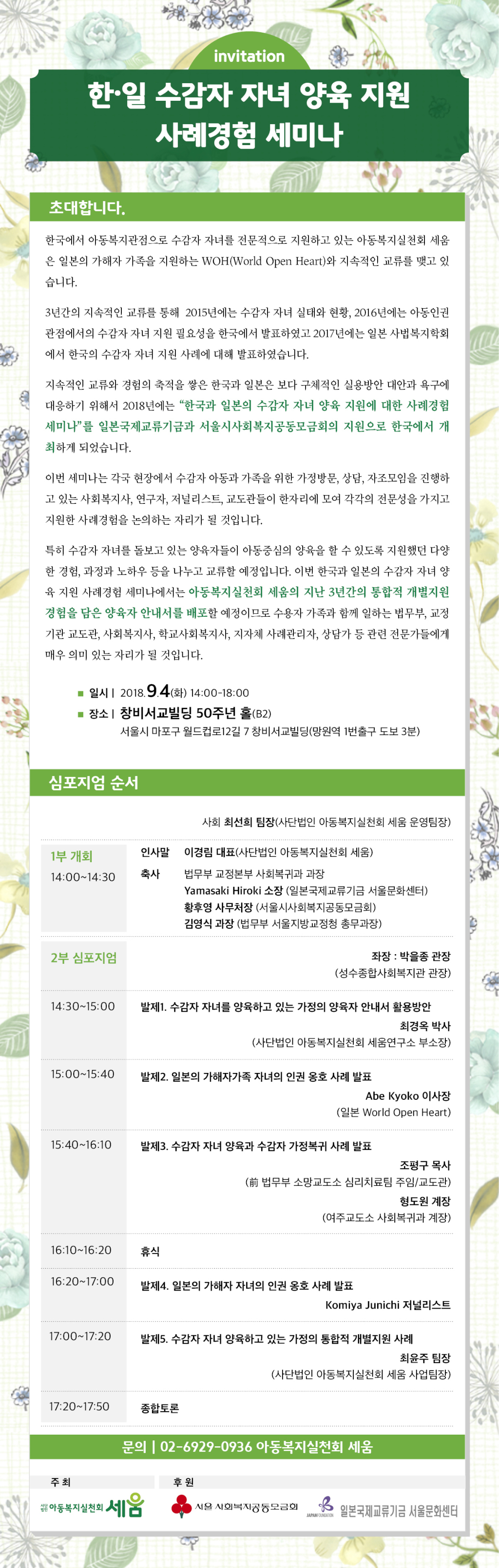 ◎ 행 사 명 : 한·일 수감자 자녀 양육 지원 사례경험 세미나